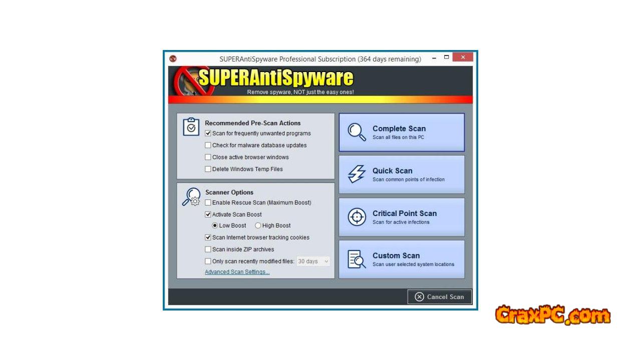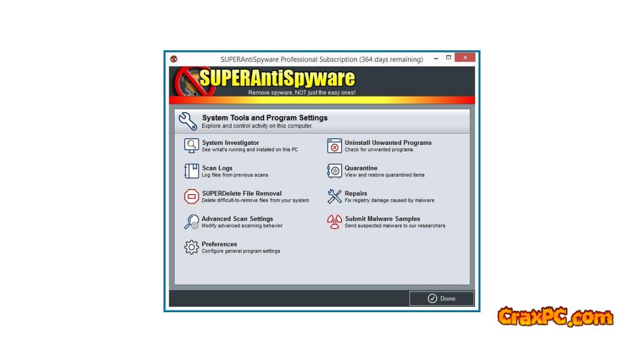 SUPERAntiSpyware is a software application that focuses on detecting and eliminating more than one million instances of malicious threats, including those that are uncommon or difficult to locate.