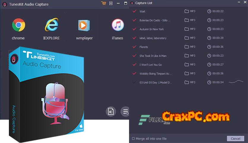 For Windows, Tuneskit Audio Capture can be downloaded for free in its entirety as a standalone offline installer. The greatest audio grabber ever created can record any type of audio that is playing on a computer and store the songs in MP3, WAV, AAC, FLAC, and other formats.