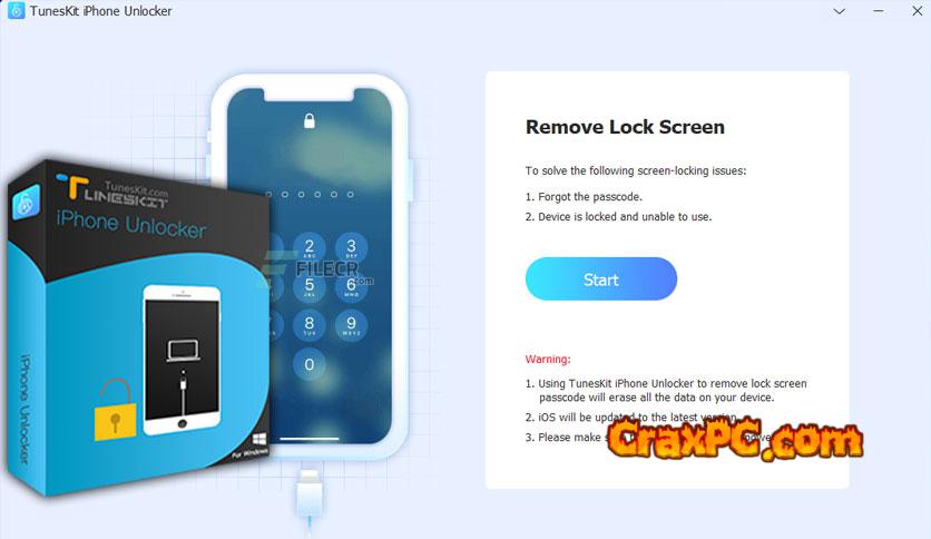 TunesKit iPhone Unlocker complete version standalone offline installer for Windows is available for free download. It enables the rapid removal of screen passcodes, Face ID, and contact ID on the contact of iPhones, iPads, and iPods.