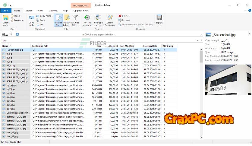 Additionally, it detects NTFS hard links. While typing in a file name or pattern such as *.exe, the initial results will be displayed. UltraSearch furthermore provides support for regular expressions.
