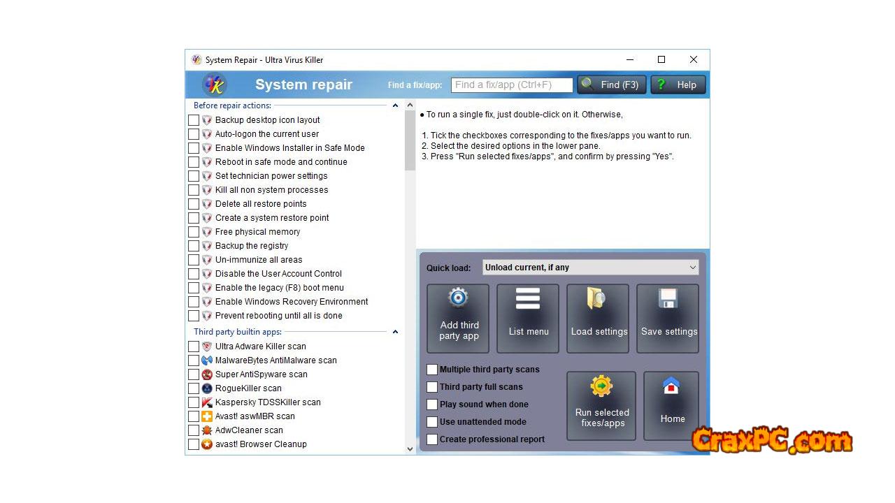 UVK Ultra Virus Killer comes with tools and remedies to handle the majority of typical maintenance and repair chores for systems. It can also generate professional reports and your own automated third-party apps, in addition to automating the most popular malware eradication solutions. The unattended mode is compatible.