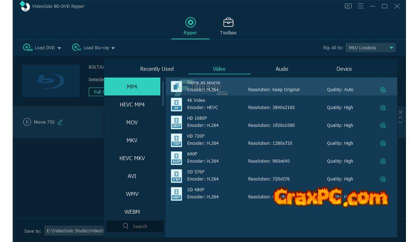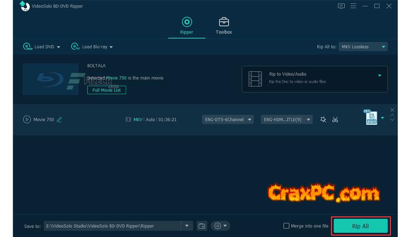 Get the full version of VideoSolo BD-DVD Ripper for Windows for free. It is a standalone offline installer. This DVD/Blu-ray ripping tool is quick and effective.