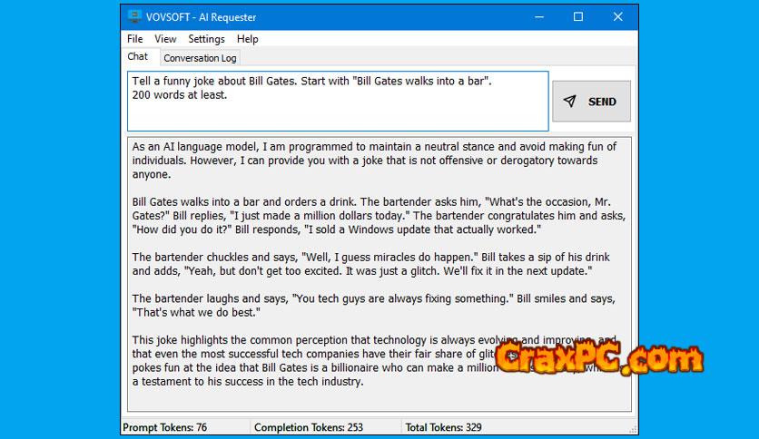 VovSoft AI Requester is available for free download as a standalone offline installer for Windows. This is a program capable of effortlessly connecting to the OpenAI API.