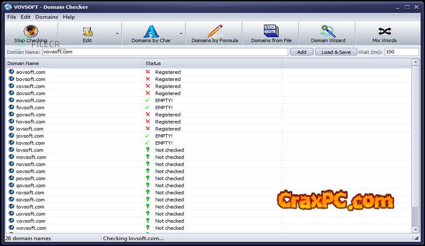 VovSoft Domain Checker is a tool that allows you to check the availability of numerous domain names at once. Download the full version, standalone offline installer, for free for Windows.