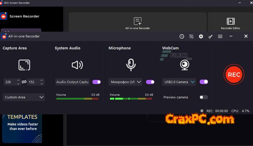 It provides the ability to capture screenshots at any time, record HD audio and video, and capture any portion of the screen. A video editor and movie maker are included. Creating a movie from images and video clips is a simple process.