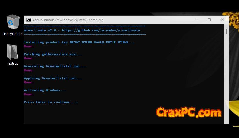 • Execute “winactivate.cmd” with elevated rights by selecting “Run as administrator” from the context menu.• You must have an internet connection in order to activate HWID (permanently).