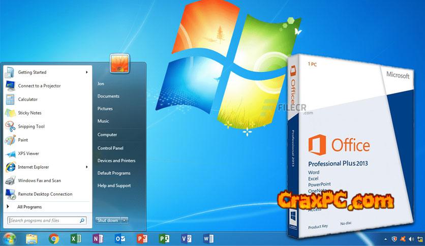 Download the preactivated ISO of Windows 7 Professional SP1 with Office 2013 Pro (x86/x64) for free.