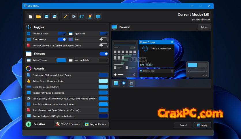 This tool provides an intuitive interface through which Windows 10 and 11 accents can be colored without restriction. This program simplifies the process of customizing your Windows laptop. It grants you the capability to modify virtually every element pertaining to the visual presentation of your desktop.