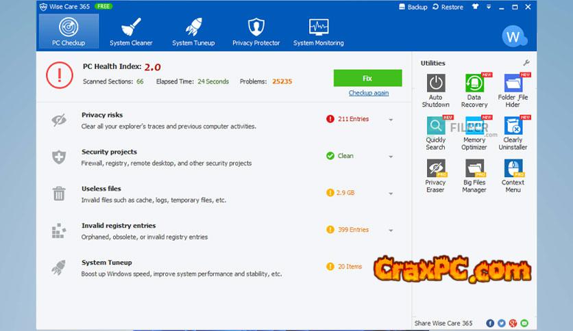 Wise Care 365 is available for free download as a standalone offline installer for Windows. With numerous features, this is a free PC cleaner and speed-up application.