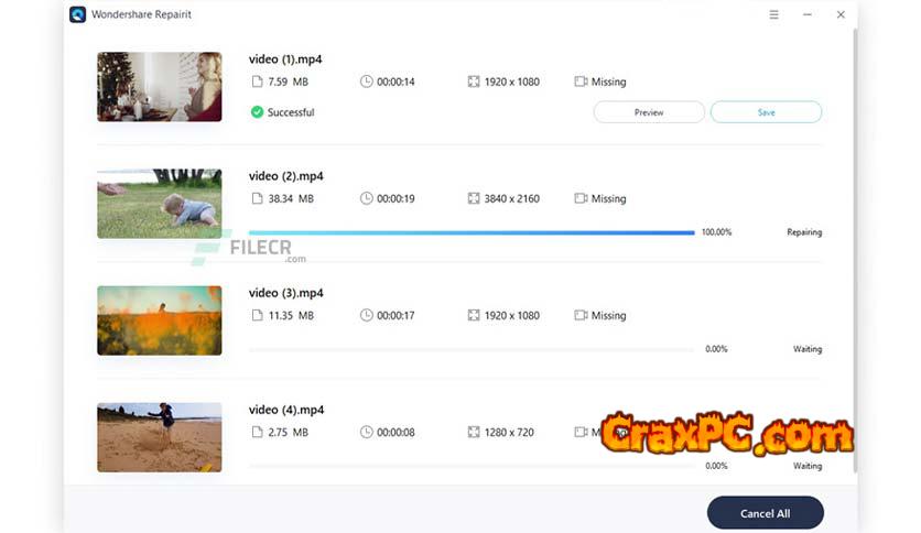 No restrictions on the size of video files for repair; preview fixed videos before saving