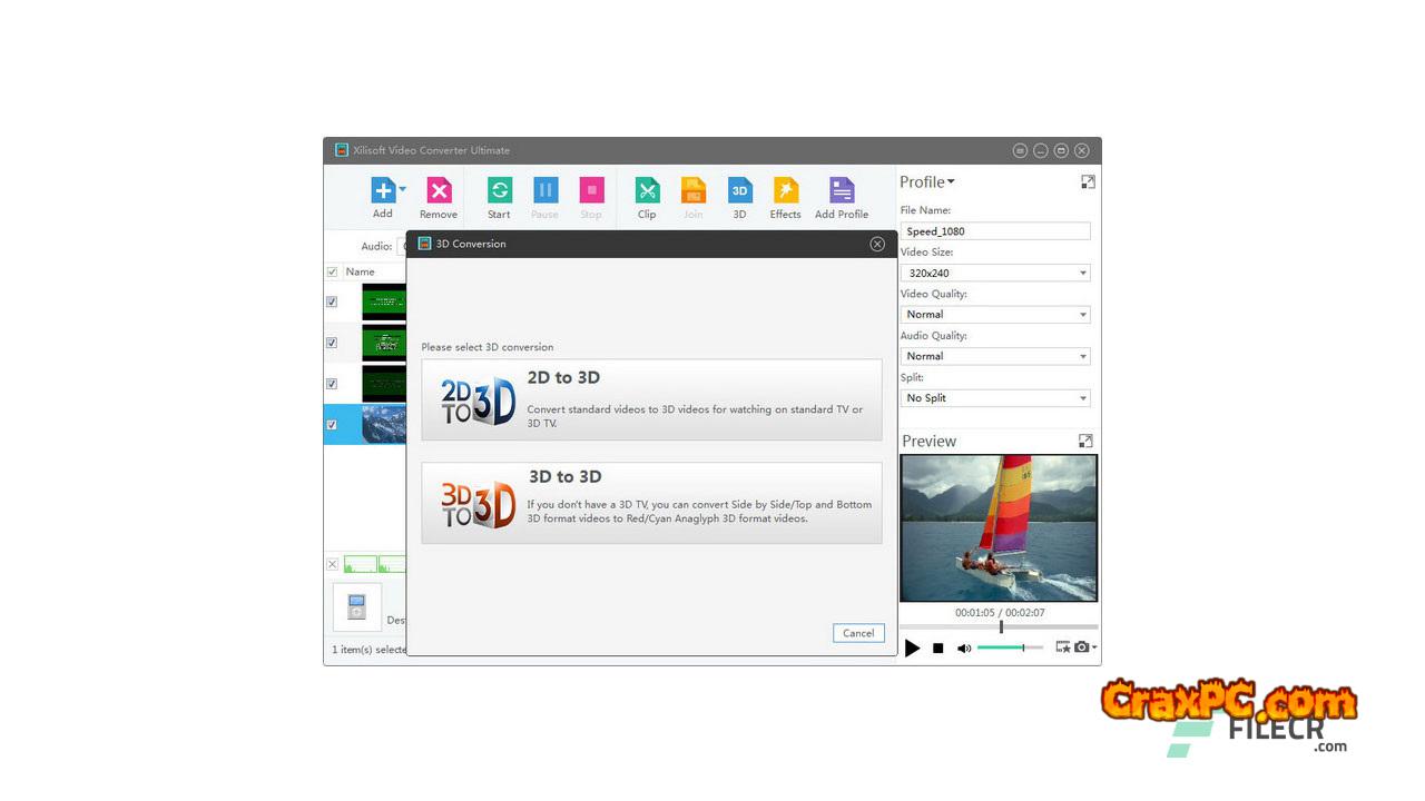 For Windows computers, download Xilisoft Video Converter Ultimate 7 for free. It is feature-rich, dependable, quick, and simple. Not only can it convert ordinary videos in all common formats, but it can also convert standard videos to 3D videos and convert one 3D video to another.