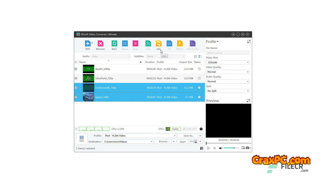 Use GPU Processing Acceleration technologies such as ATI-Stream and NVIDIA-CUDA to enhance performance while converting videos on AMD APP&CUDA-capable GPUs.