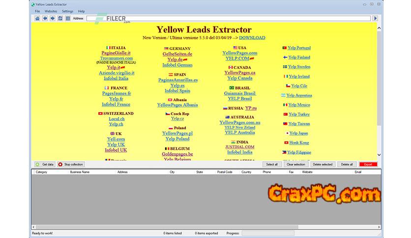 The Infobel directory, in addition to the Yellow Pages directory, allows you to collect corporate data globally with the program.
