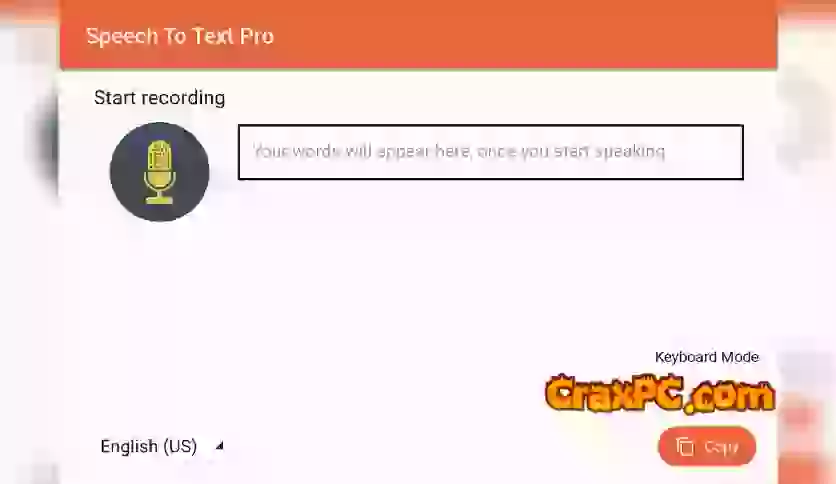 The keyboard mode function provides users with the added convenience of entering text automatically using their keyboard. When this mode is activated, the application will automatically convert your spoken words into text, enabling you to type effortlessly without the need for manual input.